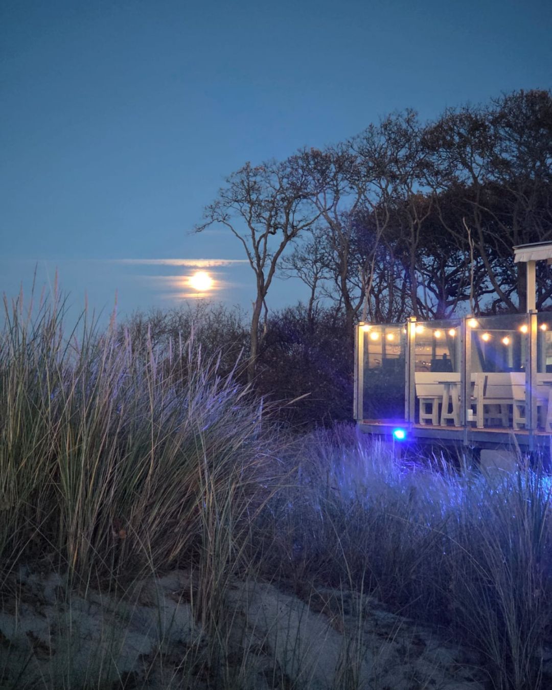 Heute Abend haben wir einen Tisch in der Blauen Boje. Gutes Essen, ein Glas Wein, dazu der Blick aufs Meer – ich liebe es, hier zu sitzen und hinüber nach Warnemünde zu schauen: funkelnde Lichter, auslaufende Schiffe, das Neptun-Hotel und (meistens auch) das Riesenrad.