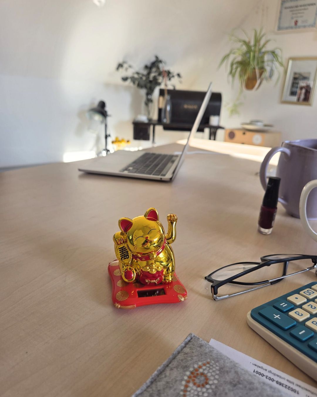 Gestern ist ein alter, neuer Mitbewohner auf meinen Schreibtisch zurückgekehrt: eine Winkekatze. Meine erste habe ich mir 2021 aus Thailand mitgebracht. Vor etwa einem Jahr wollte sie plötzlich nicht mehr. Seither war ich irgendwie „aus dem Tritt“. Jetzt war es Zeit für eine neue. Solche kleinen Rituale sind keine Spielerei. Sie machen Spaß, ja, aber vor allem geben sie ein gutes Gefühl. Und dieses Gefühl wirkt. Es erdet, es fokussiert, es trägt durch den Tag. Manifestation!